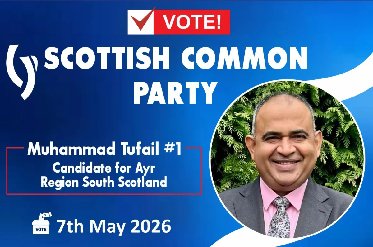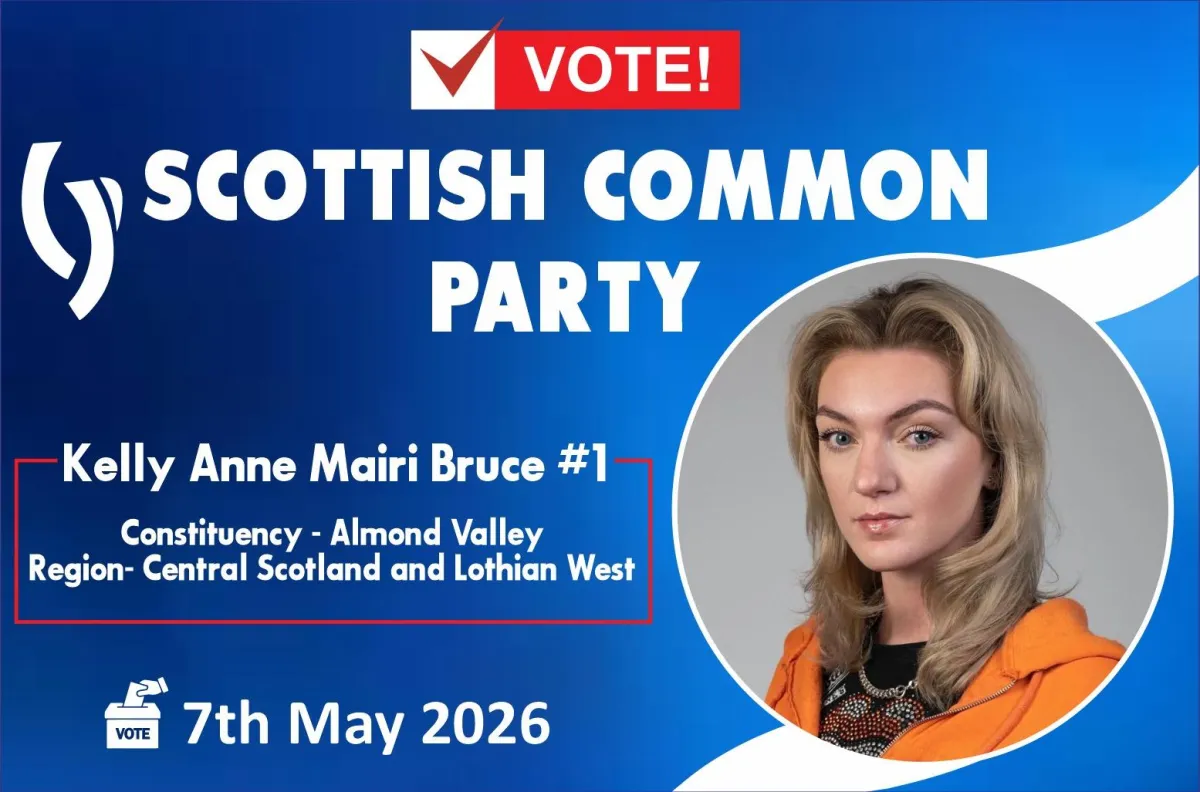 Published and promoted by the Scottish Common Party. Registered address: 532 Cathcart Road, Glasgow, Lanarkshire, United Kingdom G42 8YG.